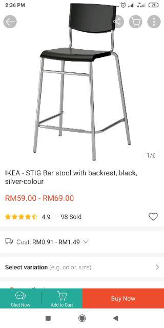 Ikea stig bar stool with backrest black silver color the stool can be stacked so you can keep several on hand and store them in the same space as one.