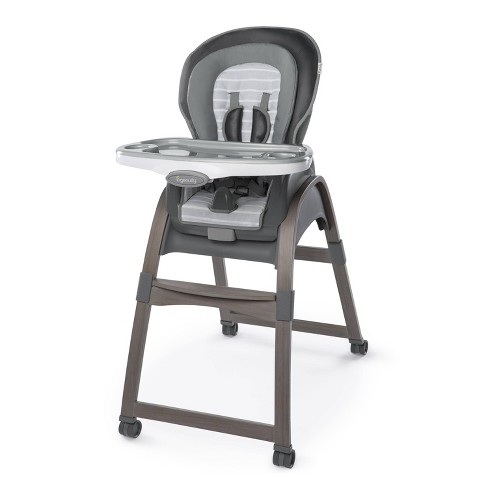 The trio elite 3 in 1 high chair from ingenuity easily adjusts from full size high chair to booster seat to toddler chair.