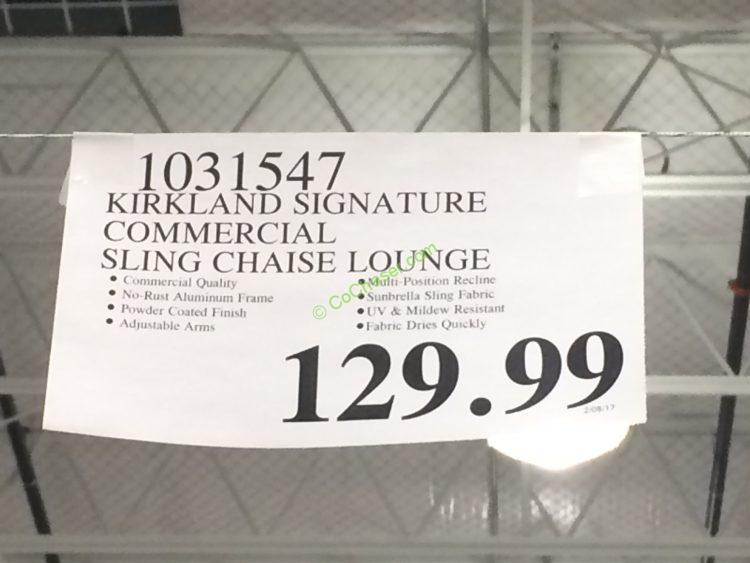 Select costco locations have the kirkland signature commercial sling chaise lounge on sale for 112 99 after instant savings now through april 21 2019 that is 20 off costco s regular price of 132 99.